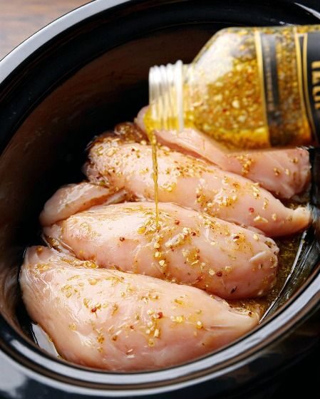 A: The Italian dressing serves as both a marinade and a cooking liquid, infusing the chicken with flavor as it cooks in the slow cooker.
