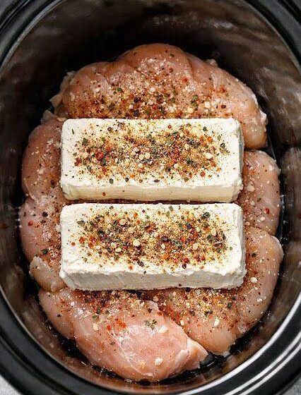 There’s a little magic in this dish: raw chicken breasts, cubes of cream cheese, and a splash of broth go straight into the slow cooker. Hours later, you’re rewarded with tender, melt-in-your-mouth chicken bathed in a rich, creamy sauce.