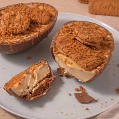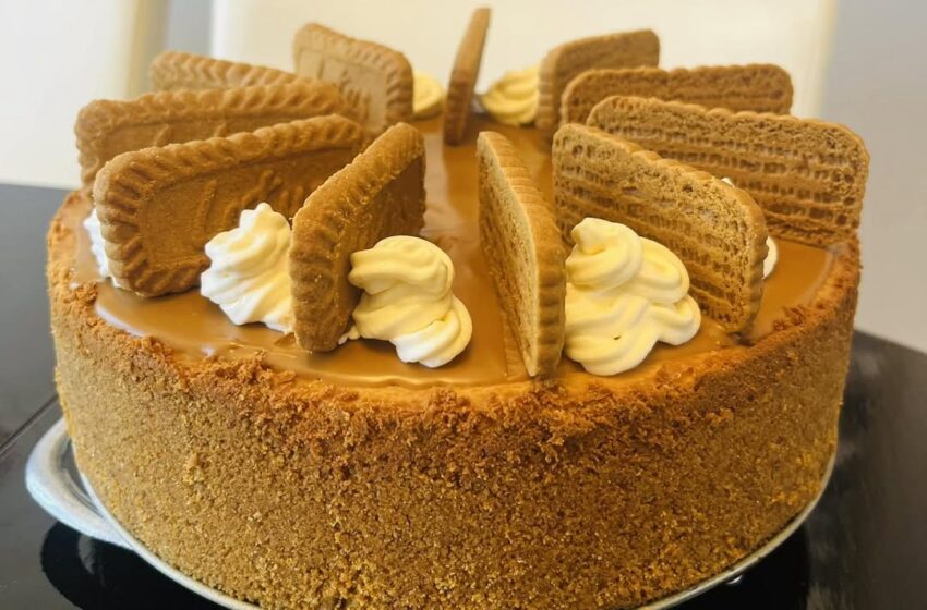 To serve, garnish with crushed speculoos cookies and drizzle with cookie butter.