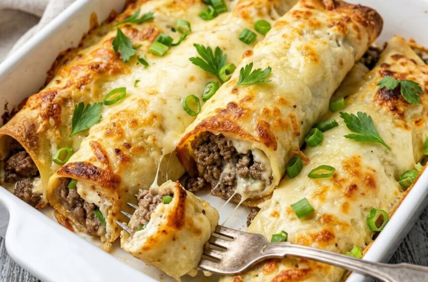 These tortilla wraps are filled with savory seasoned ground beef, gooey melted cheese, and fresh green onions, then pan-fried or baked until golden and crisp. They’re easy to customize, kid-approved, and freezer-friendly—making them a go-to family favorite.