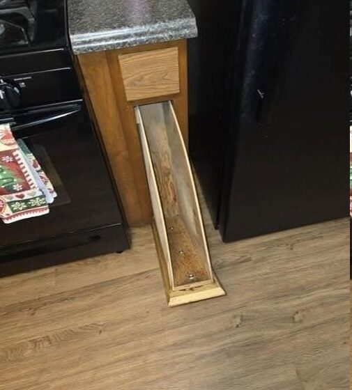 When we first walked into the kitchen of our newly purchased home, everything seemed normal. The countertops were clean, the cupboards sturdy, and the pantry organized. It wasn’t until we started opening cabinets to check for any signs of pests or damage that we noticed it: a small, oddly designed cabinet door tucked into a corner, separate from the others.