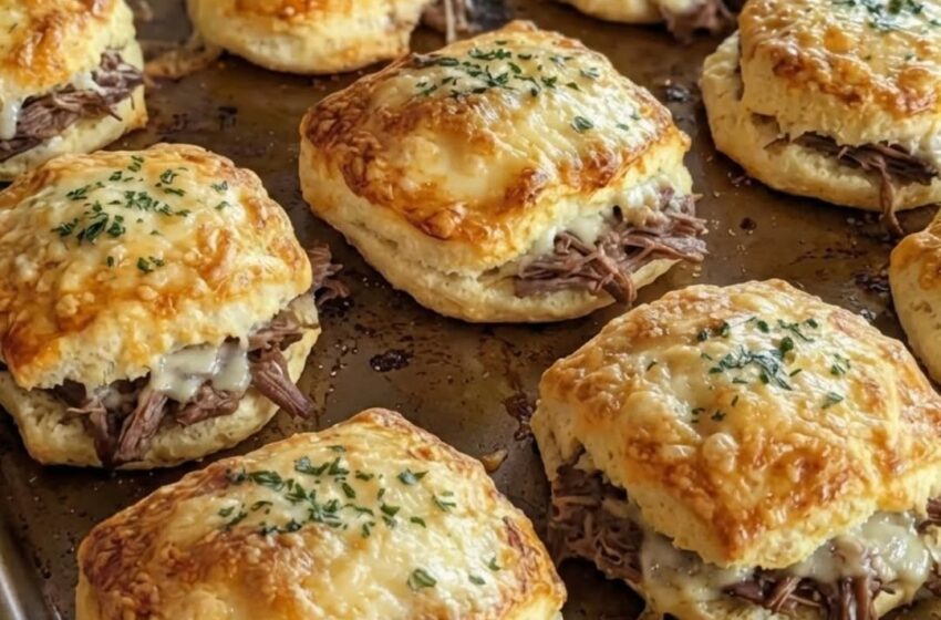 Warm, flaky, and packed with savory goodness, these French dip biscuits are a fun twist on the classic French dip sandwich. Buttery biscuits are filled with tender roast beef and melty cheese, then served with a rich au jus for dipping—making every bite juicy and irresistible.