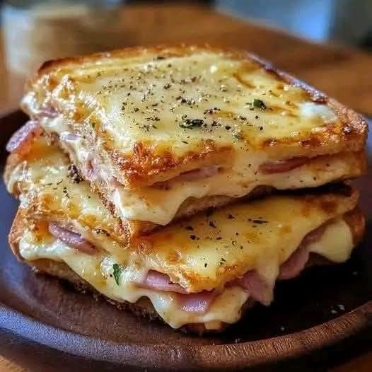 This golden baked ham and cheese melt is the ultimate comfort sandwich—crispy on the outside, irresistibly creamy inside, and layered with savory ham and bubbling melted cheese. Finished with a light sprinkle of black pepper and herbs, it delivers bakery-style indulgence with simple, everyday ingredients.