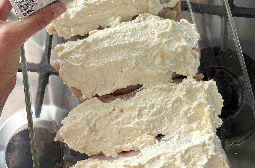 Top Chicken: Spoon the cream cheese mixture generously onto each chicken breast in the baking dish. Spread the mixture to cover the top of each chicken breast.