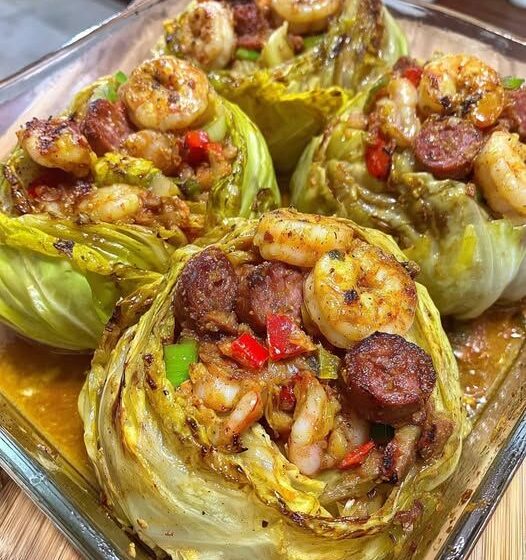 Low-carb comfort meets bold Southern flavor in this one-pan keto masterpiece. Tender cabbage halves are hollowed into bowls and filled with a spicy, smoky mixture of andouille sausage, plump shrimp, bell peppers, onions, and Cajun spices—then baked until golden and tender. Topped with melted cheese for extra indulgence, this dish is hearty, flavorful, and perfect for meal prep or weeknight dinners.