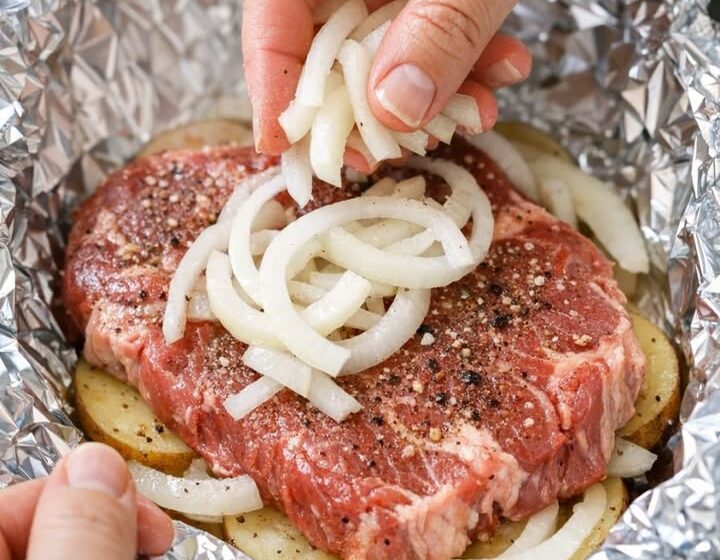 4-Ingredient Oven-Baked Beef Steak and Onion Foil Bake