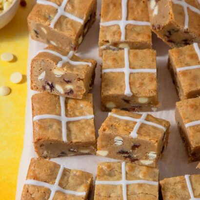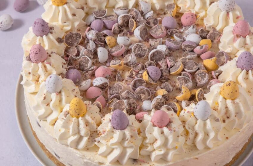 Creamy vanilla cheesecake over a biscuit base, packed with plenty of Mini Eggs – perfect for Easter!