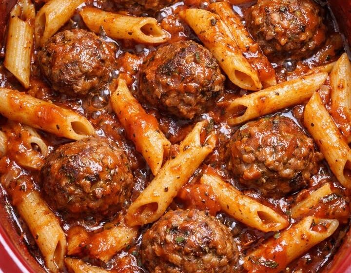 Once the penne is cooked to your liking, give everything a final gentle stir so the savory tomato sauce and meatball juices coat all the noodles. Turn the slow cooker to WARM and let it sit 5 to 10 minutes to thicken slightly before serving.