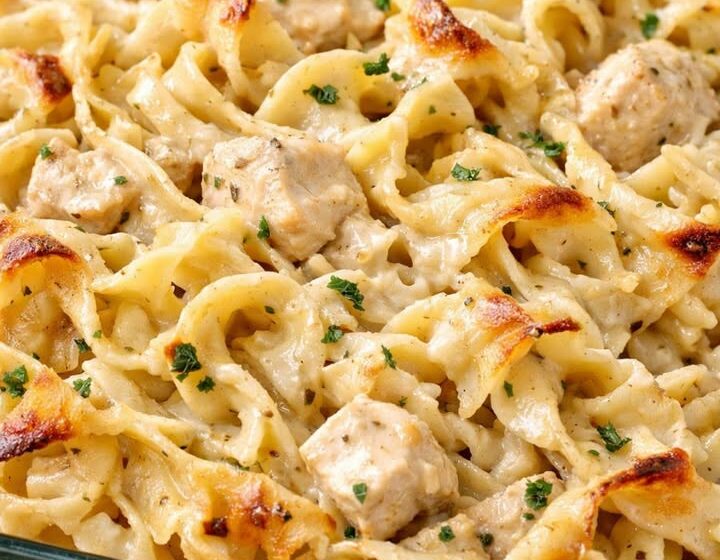 Oven Baked 4-Ingredient Amish Chicken and Noodle Casserole