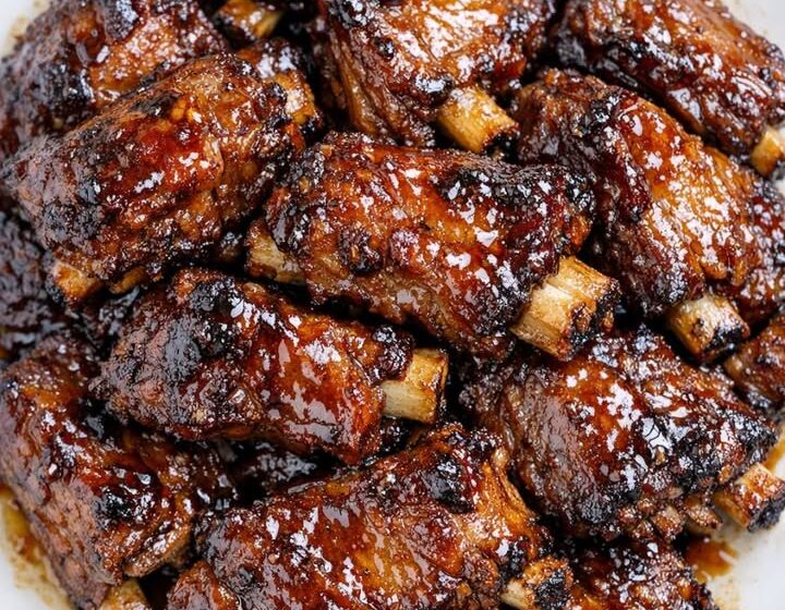 Transfer the ribs to a serving plate, spoon any remaining glaze over the top, and serve hot while the meat is tender and falling off the bone.