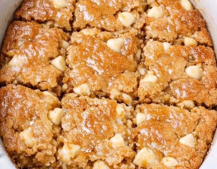 Cool and store leftovers: If you have leftovers, let the slow cooker insert cool completely, then cut the blondies into bars. Store them in an airtight container at room temperature for up to 2 days, or refrigerate for up to 4 days. Rewarm gently in the microwave or a low oven to bring back the gooey texture.