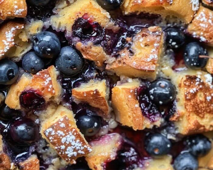 This recipe transforms simple ingredients into a luxurious baked French toast that feels special without being complicated. By soaking the bread overnight, the custard fully penetrates each slice, creating a creamy interior with a lightly crisp, golden top. The blueberries add freshness and balance, while lemon zest brightens every bite.