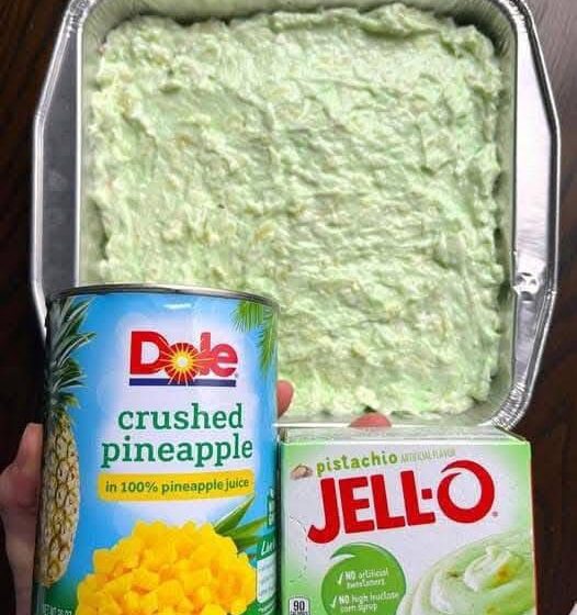2. Mix cake batter: In a large bowl, combine cake mix, pistachio pudding mix, eggs, oil, and soda. Beat until well blended and fluffy. Gently fold in the drained pineapple and chopped pistachios.
