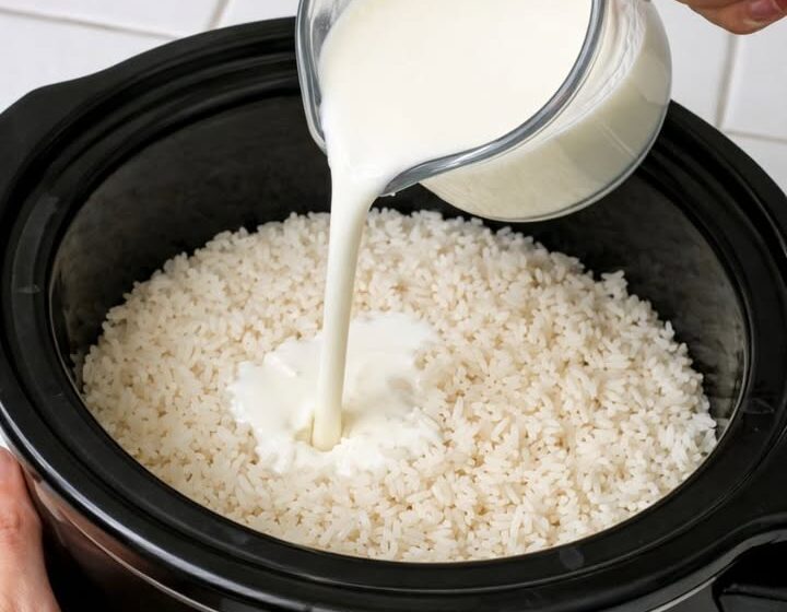 Step 3: The Gentle Simmer: Pour the milk mixture over the rice. Cover and cook on LOW for 3/4 hours.