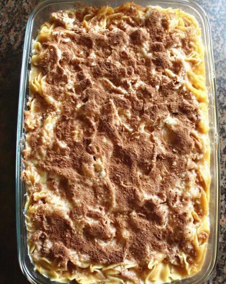 6. Allow the kugel to cool slightly before serving. Slice into squares and enjoy the warm, comforting flavors of cinnamon kugel.
