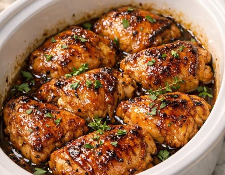 Optional but recommended for a golden, caramelized finish: Preheat your broiler and line a baking sheet with foil. Carefully transfer the cooked chicken thighs (skin side up) to the baking sheet, leaving the sauce in the slow cooker. Broil for 3 to 5 minutes, watching closely, until the skin is deep golden and lightly crisped.