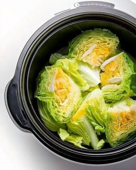 - Layer the Crockpot: Place the chopped cabbage and diced onions into the slow cooker.