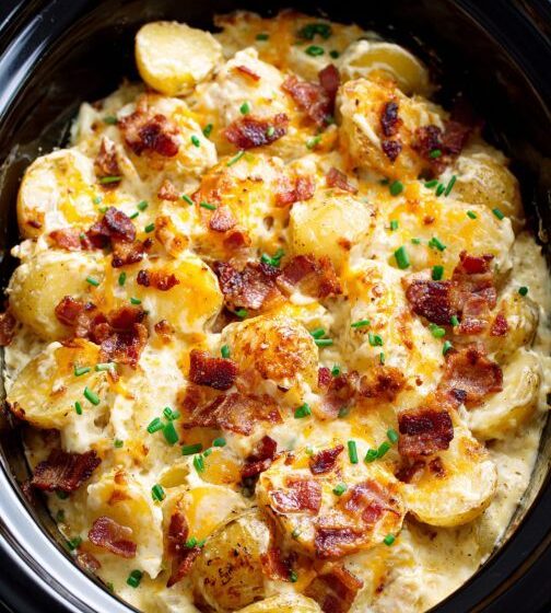 Slow Cooker Cheesy Scalloped Potatoes with Bacon