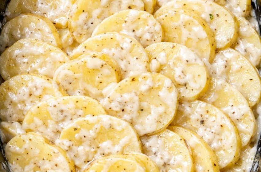 Repeat the layers: Continue layering potatoes, onions, sauce, cheese, and bacon until you’ve used everything, finishing with a layer of cheese on top. Aim for 3–4 layers, depending on the size of your slow cooker.