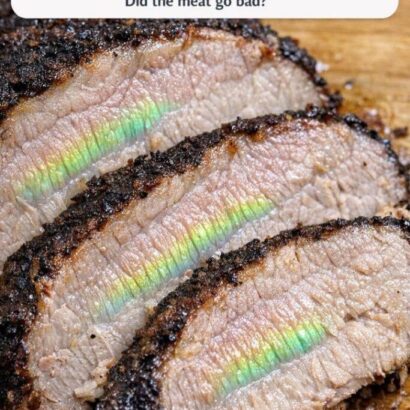 - I slow cooked a pork roast for 8 hours, but when I sliced it, I saw this weird shiny green and rainbow reflection on the meat fibers. It looks like ga.