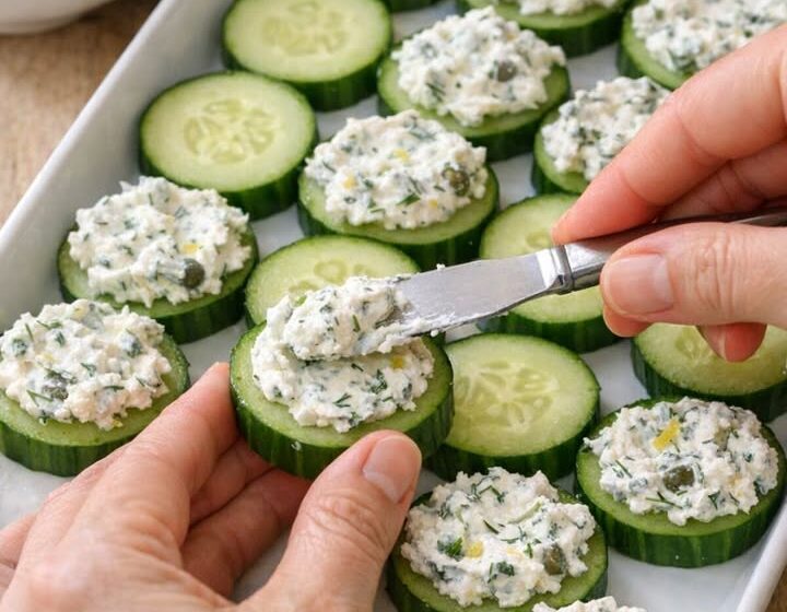 Chill the blend briefly (optional but helpful): If the cream cheese mixture feels very soft, cover the bowl and refrigerate it for 10–15 minutes. This quick chill firms the blend slightly, which makes it easier to spread neatly over the cucumber rounds without smearing over the edges.