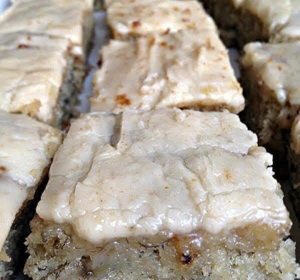 Can I freeze it? You can definitely freeze these banana bread bars! For the best results, cut them into squares, wrap them individually in plastic wrap, and place them in a freezer-safe bag for up to 2 months. Thaw them at room temperature before serving!