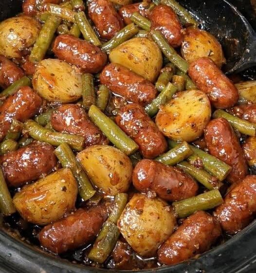 When it comes to healthy eating and sustainable meal prep, simplicity is the ultimate key to success. We often overcomplicate a balanced diet by thinking we need a million expensive ingredients, but that simply is not true. This dish requires only four simple, affordable ingredients that you can find at any local grocery store across the USA. As the slow cooker works its magic throughout the day, the savory smoked sausage, tender baby potatoes, and fresh green beans simmer gently in a savory, herb-flecked glaze that naturally thickens into a rich, mouthwatering sauce.