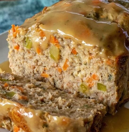 Garnish with fresh herbs like parsley or thyme before serving. Enjoy your delicious turkey and sage stuffing meatloaf!