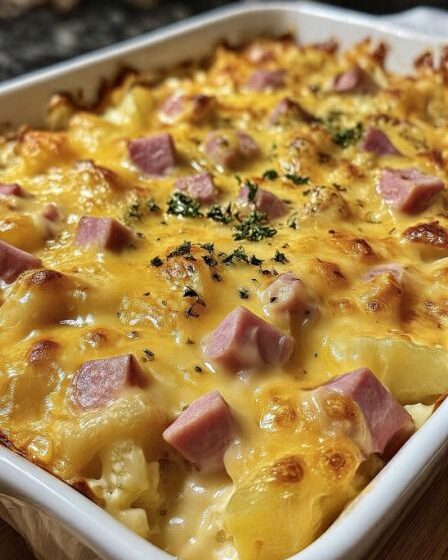 The combination of gooey melted cheese, savory ham, and tender potatoes creates a mouthwatering medley of flavors that will satisfy even the pickiest eaters.